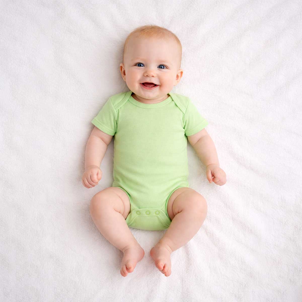 Thoughtfully designed for everyday ease, the baby green bodysuit is simple to dress and easy to pair with other baby essentials. The short sleeves make it perfect for warmer days or effortless layering under rompers, sweaters, or sleepsuits when temperatures drop. The soft green tone works beautifully as a gender-neutral option, pairing well with neutrals, whites, and playful prints.