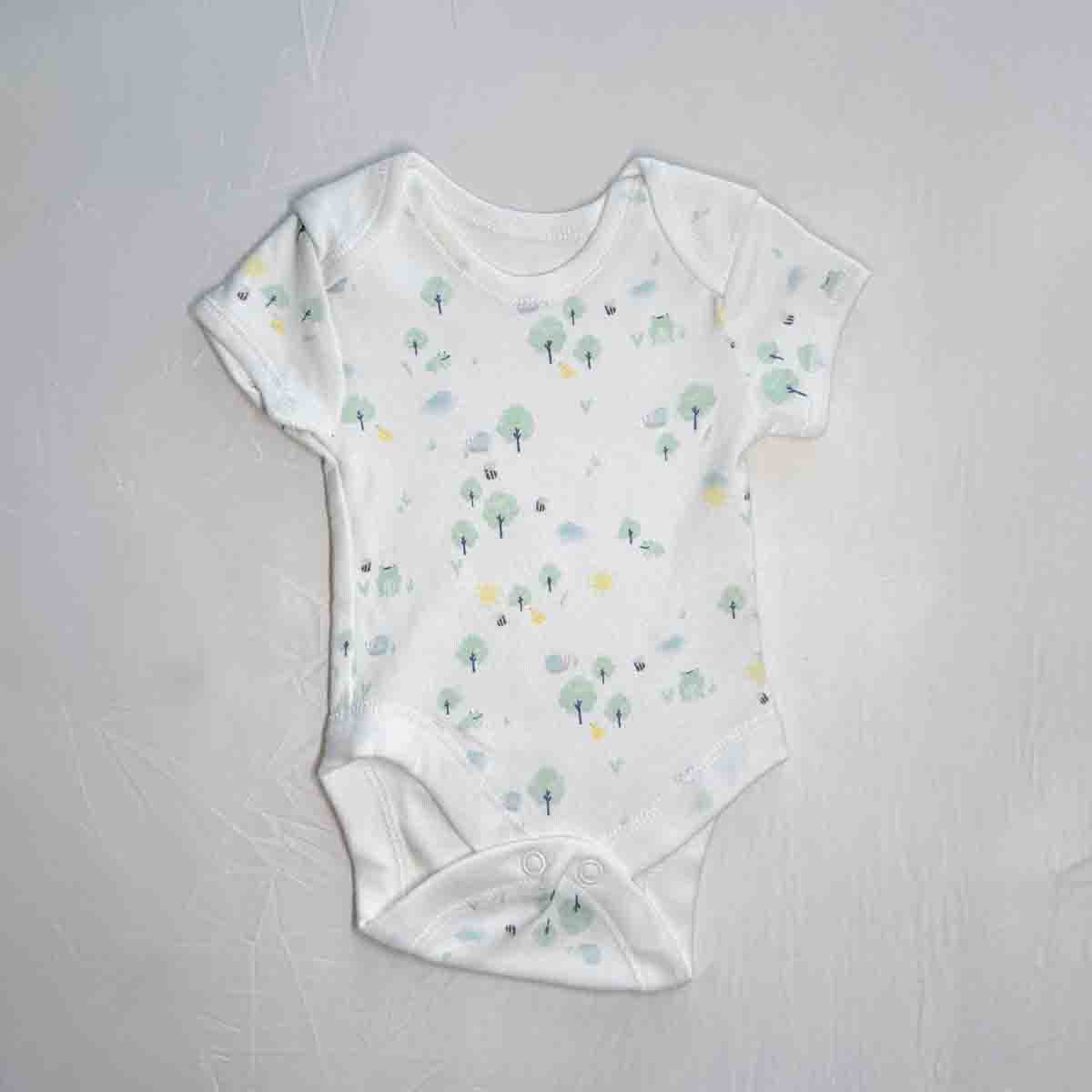 Made from soft breathable cotton with stretch fabric, this baby bodysuit is designed to keep your little one comfortable throughout naps, playtime, and outings. The lightweight, flexible fabric allows natural movement while staying gentle against sensitive skin. With classic short sleeves, envelope shoulders, and a convenient snap-button bottom closure, this bodysuit makes dressing and diaper changes quick and stress-free for parents.