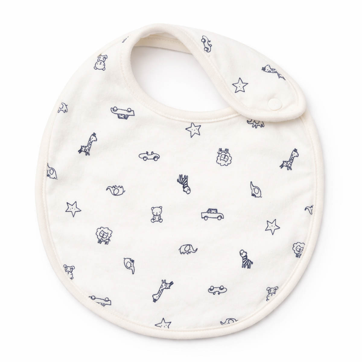 Ivory safari print baby bib designed to make everyday feeding moments feel calmer, cuter, and more put together. This beautifully crafted bib features a soft ivory base decorated with delicate safari animals, tiny stars, and playful motifs in a subtle contrasting print. The overall look is timeless and gentle, making it a lovely addition to any baby’s daily essentials.
