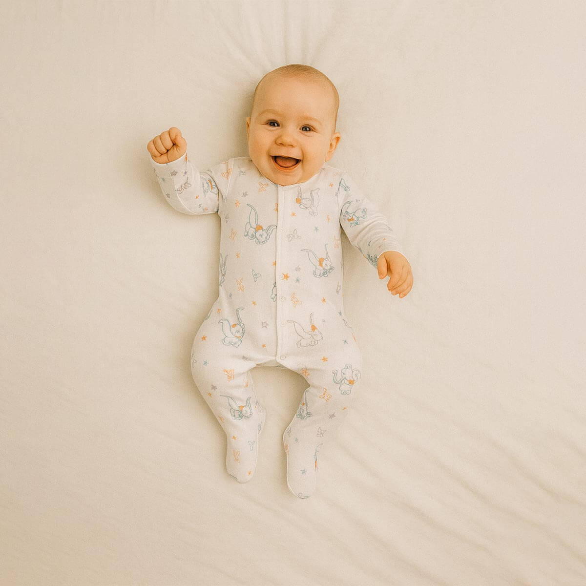 This elephant-themed sleepsuit combines cozy comfort with a storybook-inspired design, making it a beautiful addition to any baby’s sleepwear collection.