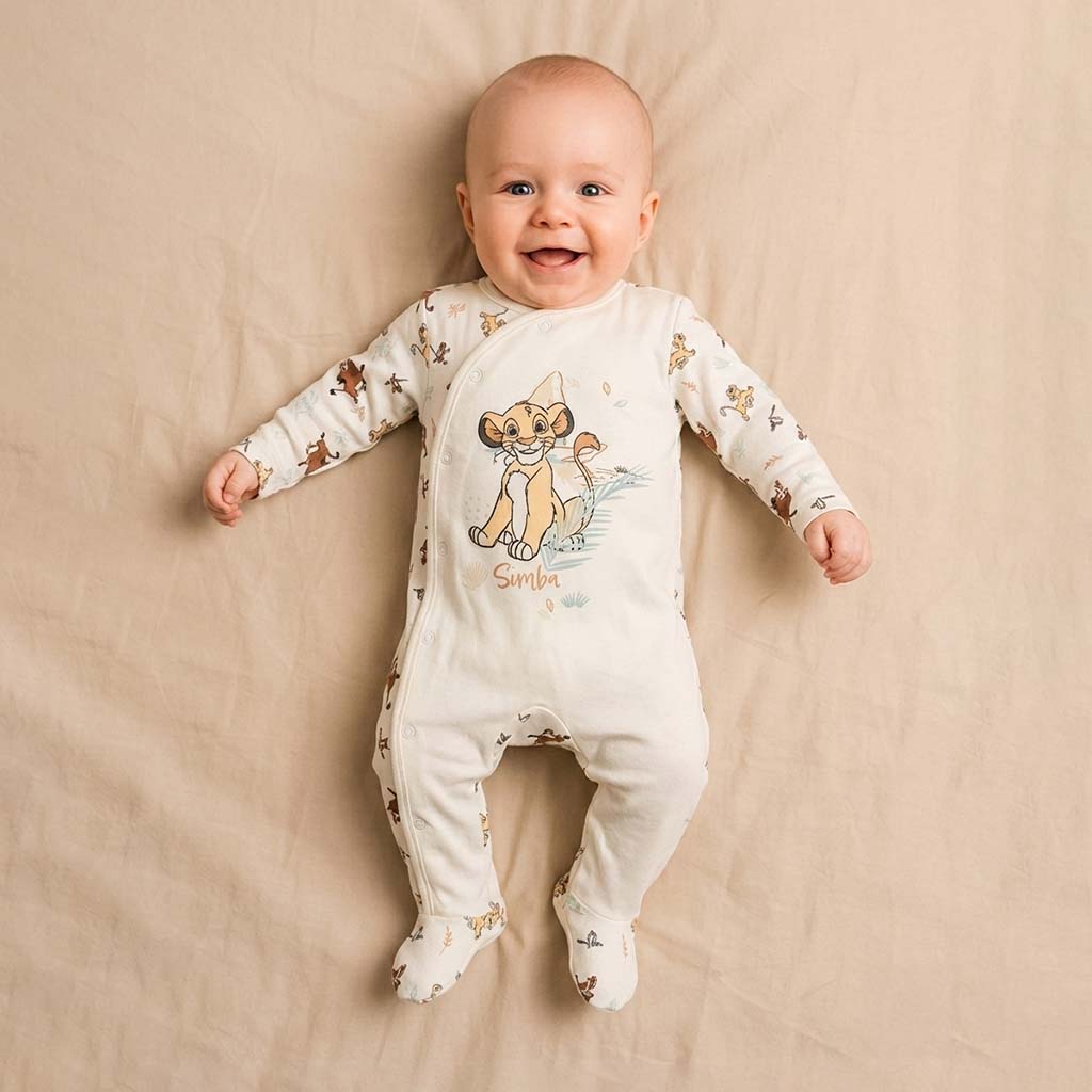 Sweet, playful, and full of storybook charm, the Little Lion Cub Sleepsuit is perfect for cozy nights and gentle daytime lounging. Featuring an adorable Simba illustration paired with subtle all-over character details, this sleepsuit brings the magic of the savannah to your baby’s everyday essentials. The soft neutral base gives it a calm, timeless look that’s easy to love.