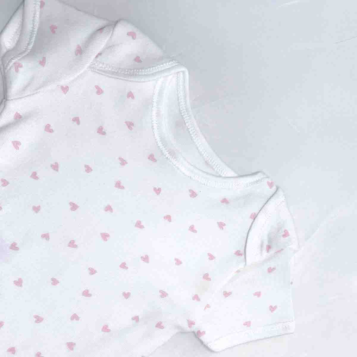 All-over tiny pink heart print — subtle, cute, and perfect for a classic baby look.