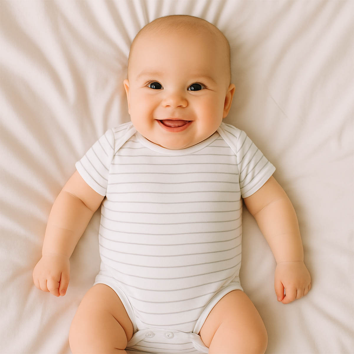 Perfect for everyday wear, layering, or gifting, the Minimal Stripe Luxe Baby Bodysuit blends simplicity with practicality, making it a go-to staple for modern parents.