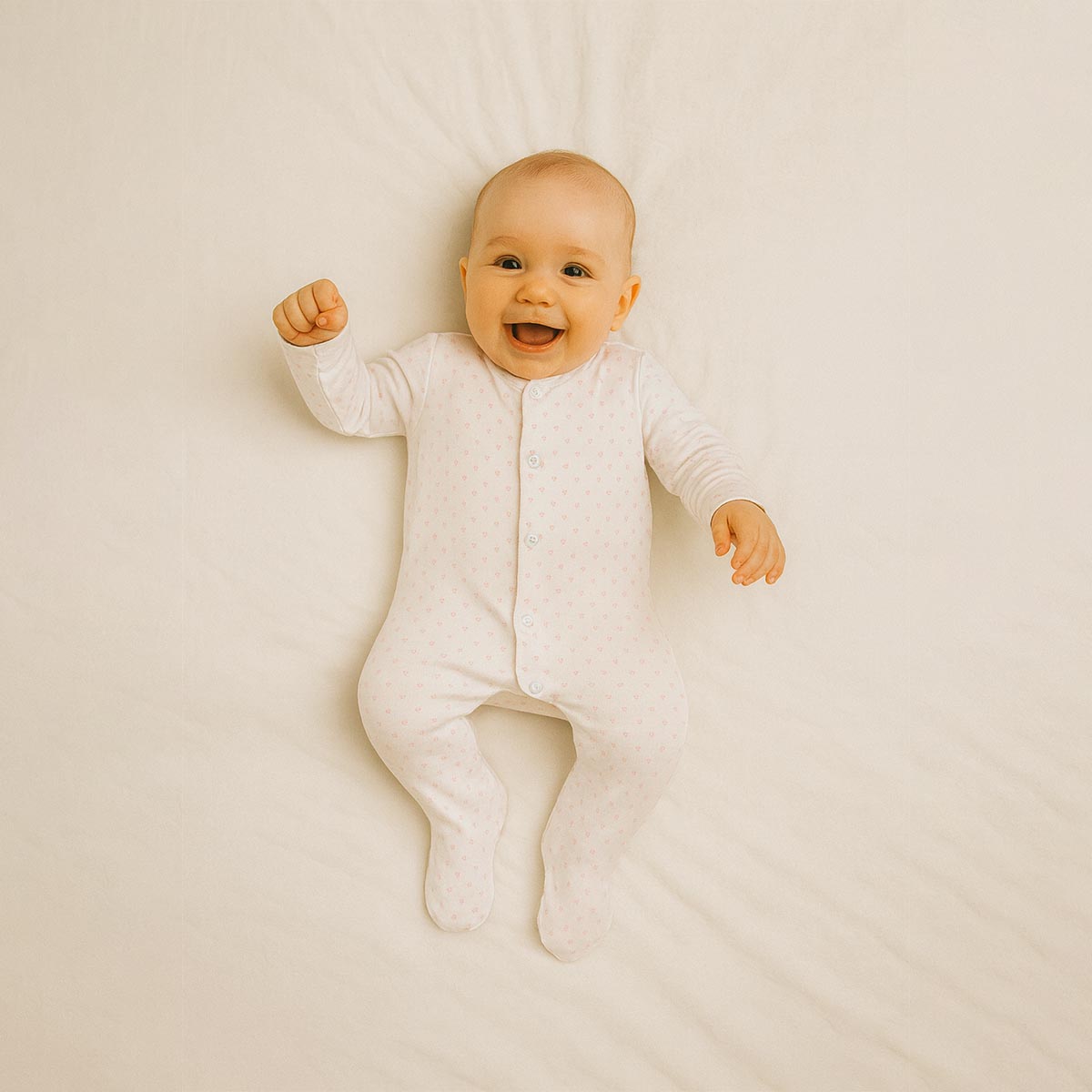 Designed to balance comfort, simplicity, and timeless charm, this sleepsuit is an essential addition to any baby’s sleepwear collection.