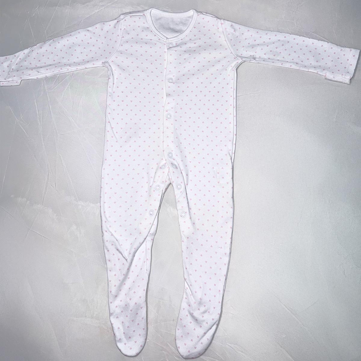 Delicate, sweet, and thoughtfully designed for peaceful nights, the Petal Kiss Hearts Sleepsuit features a charming all-over micro heart print scattered across a crisp white base. The soft blush pink hearts create a gentle, romantic look that feels calm and comforting—perfect for bedtime cuddles and dreamy sleep.