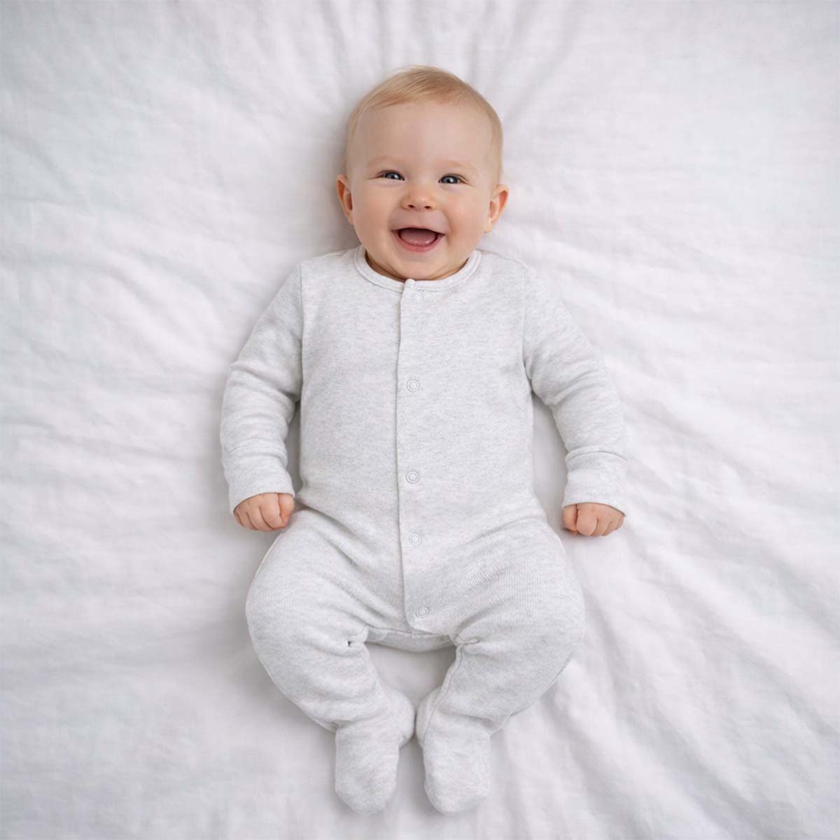 The Soft Cloud Grey Sleepsuit blends comfort, simplicity, and everyday practicality, making it a versatile essential for any baby sleepwear collection.